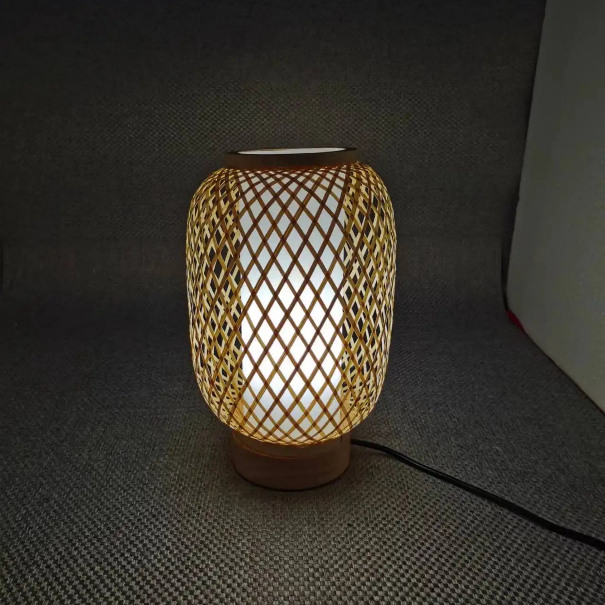 Bamboo Webbing Wooden Base Table Lamp