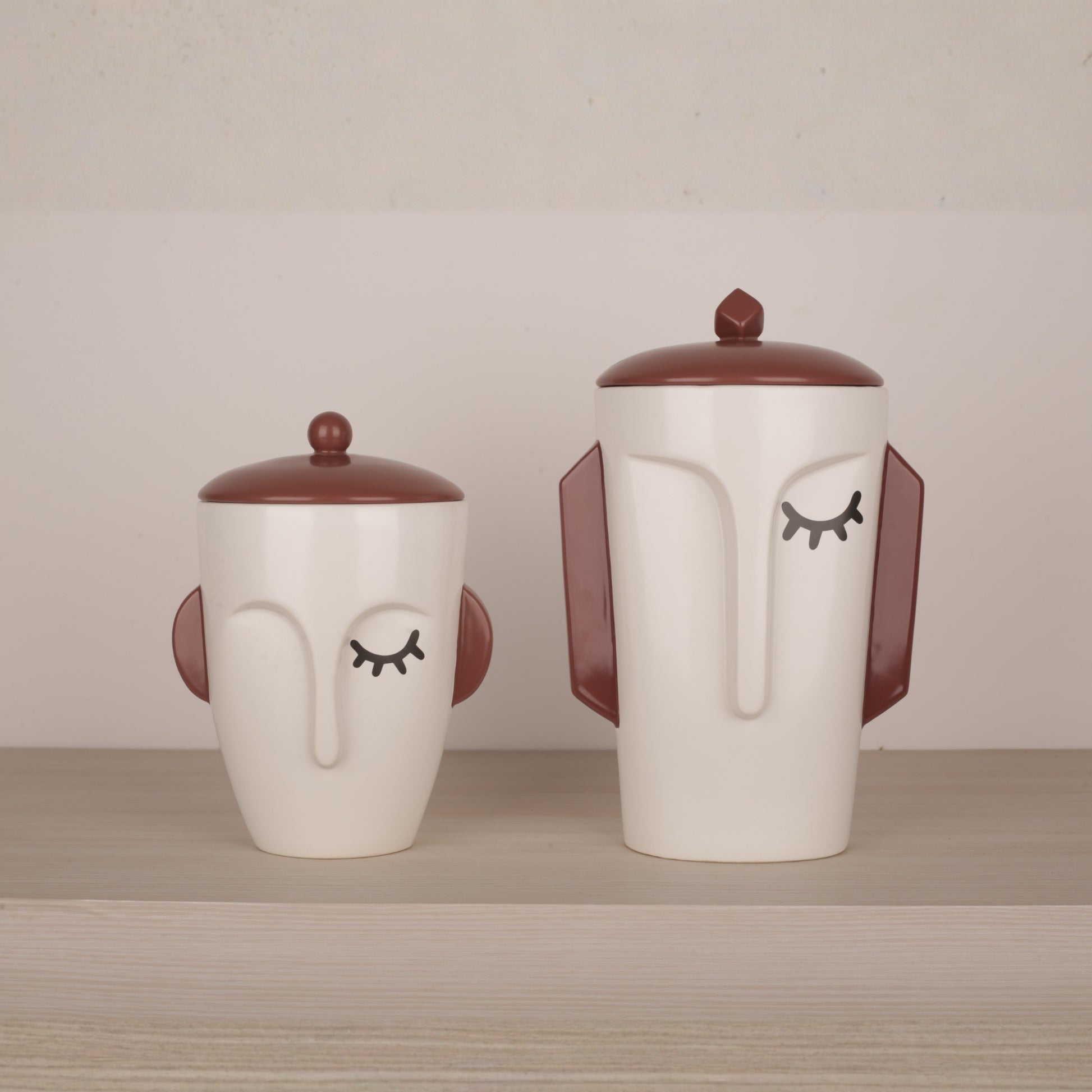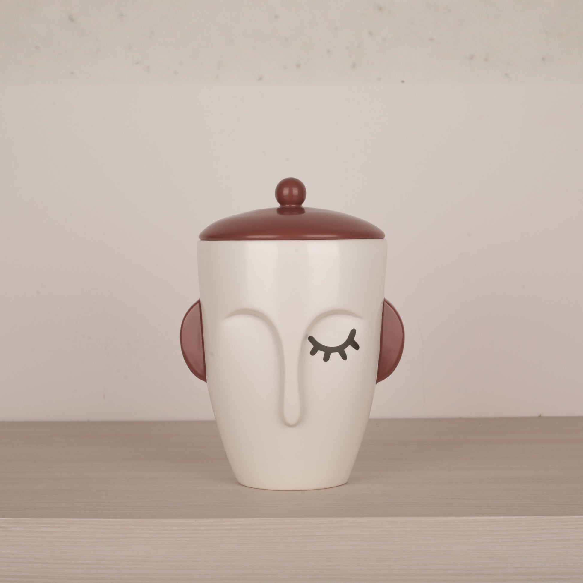 White Ceramic Face Structure Storage Jar with Lid